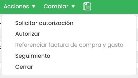 Nota: El flujo natural de una cotización de compra es: se crea → se solicita autorización → se autoriza → se referencia en una factura de compra y gasto. La acción Cerrar se reserva para cotizaciones que no continuarán su proceso.