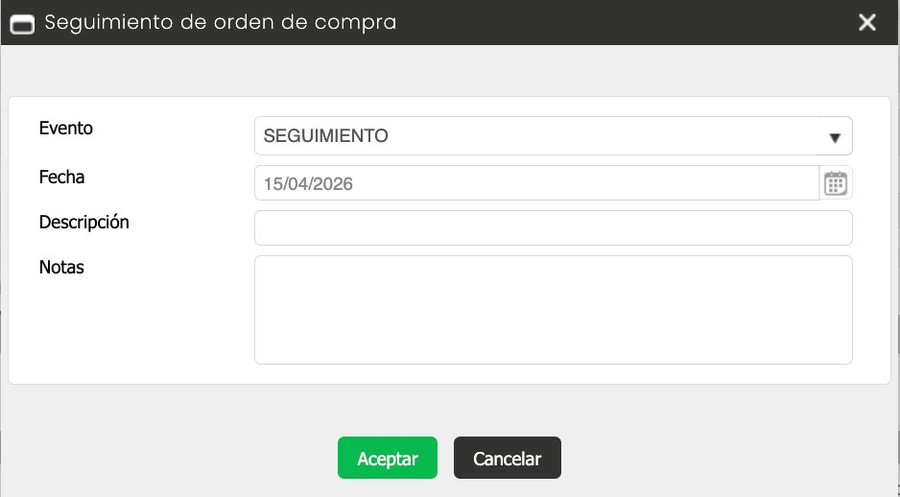 - Haz clic en Aceptar para guardar el seguimiento. El registro quedará disponible en la pestaña Seguimiento.