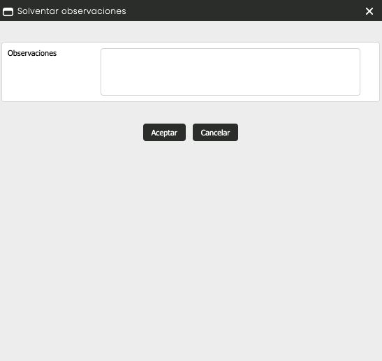 - Observaciones: Campo de texto libre donde debes redactar el mensaje con los comentarios o irregularidades que deseas comunicar al cliente o usuario responsable.