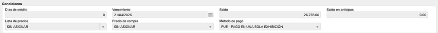- Días de crédito: Días de crédito pactados con el contacto. Por defecto se traen del catálogo de contactos y se pueden ajustar al documento.